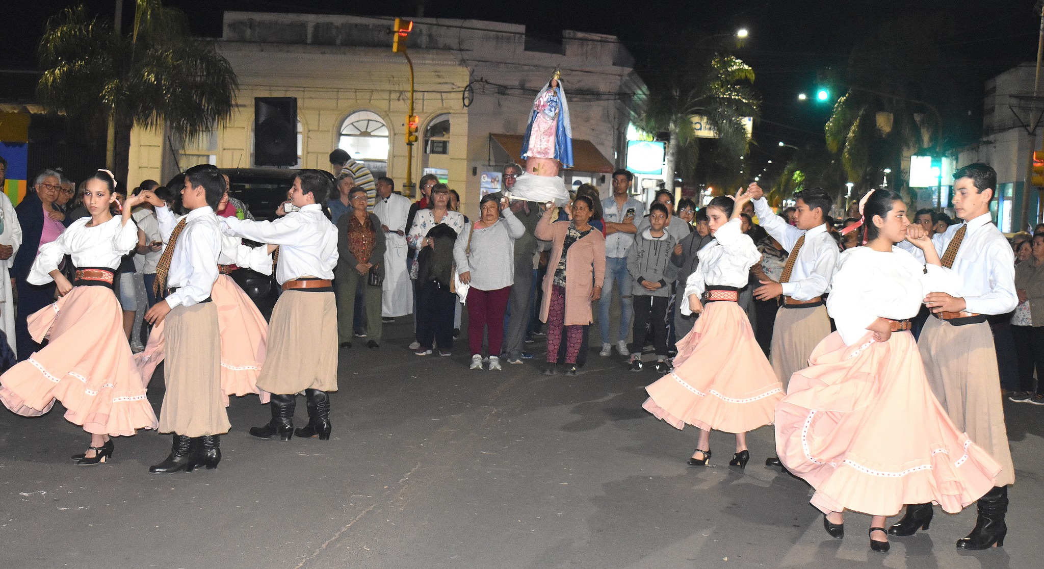 Con gran fervor religioso se inició la novena a Nuestra Señora del Pilar, que en este año arrancó con una procesión que tuvo una modalidad inédita, escuelas de danzas le honraron a la Virgen con una coreografía por la calle Berón de Astrada hasta el templo donde se celebró la Santa Misa.
