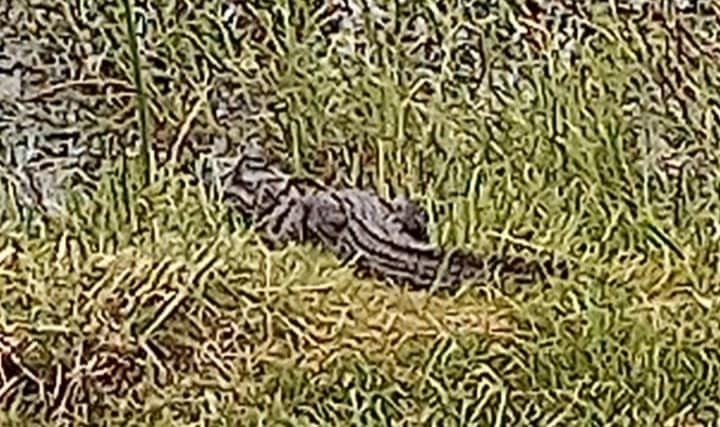 El yacaré que habita la laguna en el acceso oeste a nuestra ciudad fue captado por las cámaras de una persona que caminaba por el lugar, quien compartió las imágenes con Enfoque Digital.