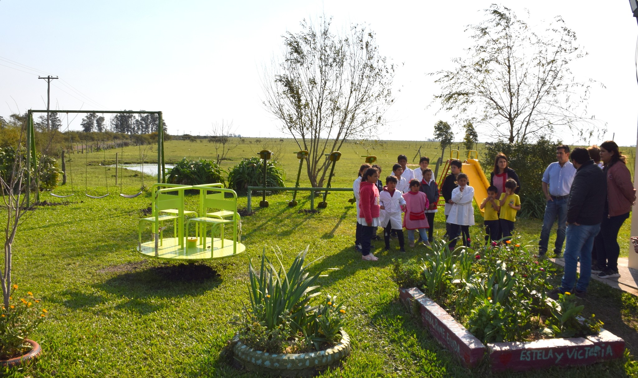 Los alumnitos de la Escuela Rural N° 585 del Paraje Baibiene, junto con su directora Estela Riquelme y su maestra jardinera Victoria Suviri, pasaron un momento feliz festejando día del niño.