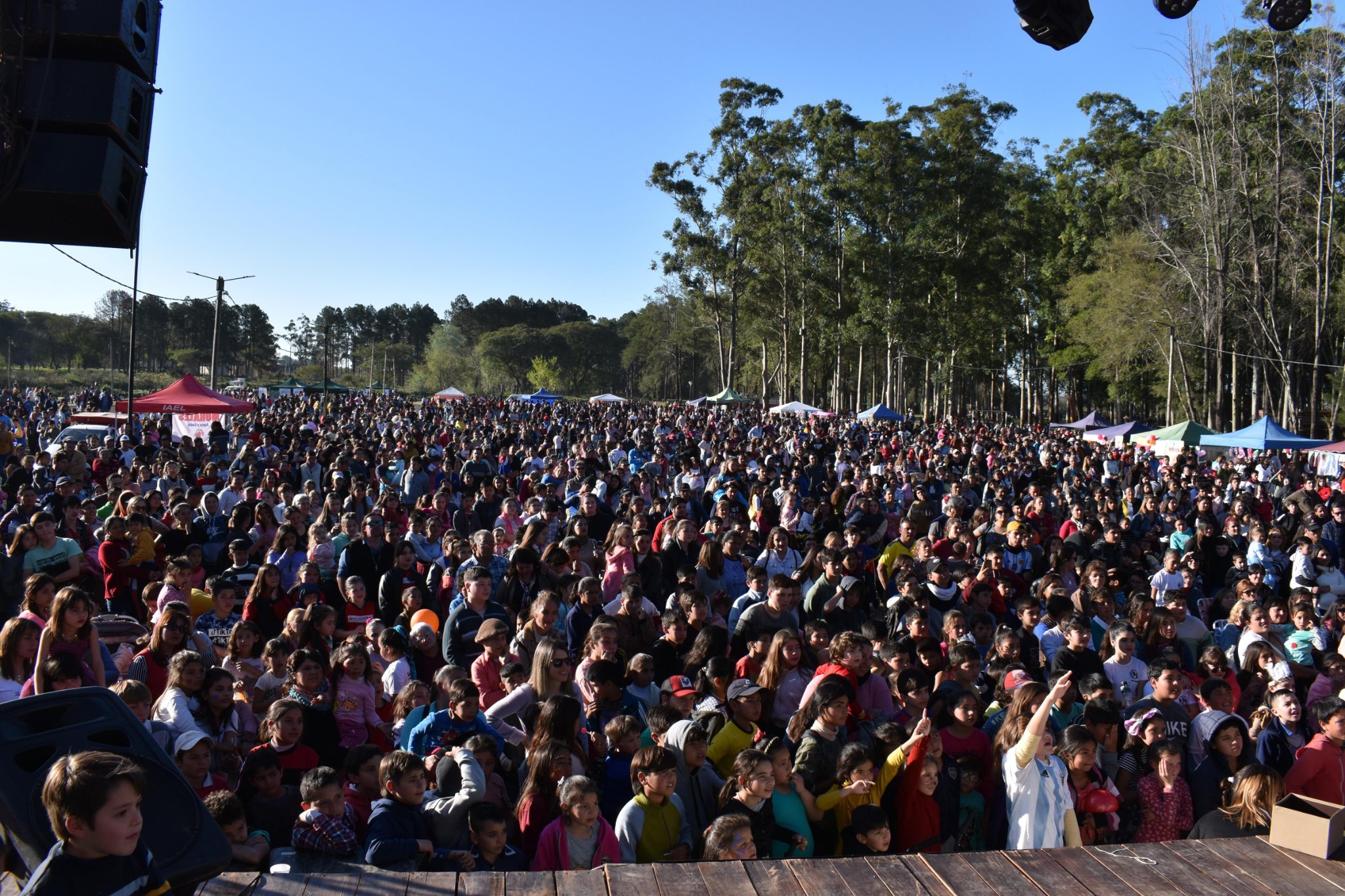 El Municipio dispuso colectivos de la Municipalidad para trasladar de manera gratuita a los niños y familias que viven lejos del predio del Martín Fierro, que estuvo colmado de personas que se acercaron con silletas, mates y niños para celebrar en familia este día.