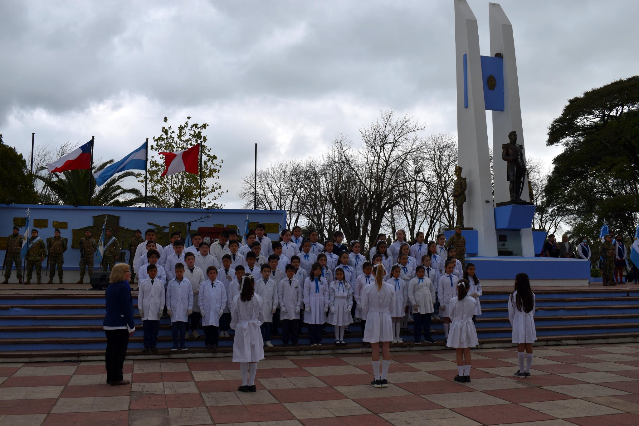 El acto central en homenaje al General Don José de San Martín comenzó minutos después de las 15 horas y a pesar del tiempo amenazante, se pudo concretar con una gran convocatoria de público presente.