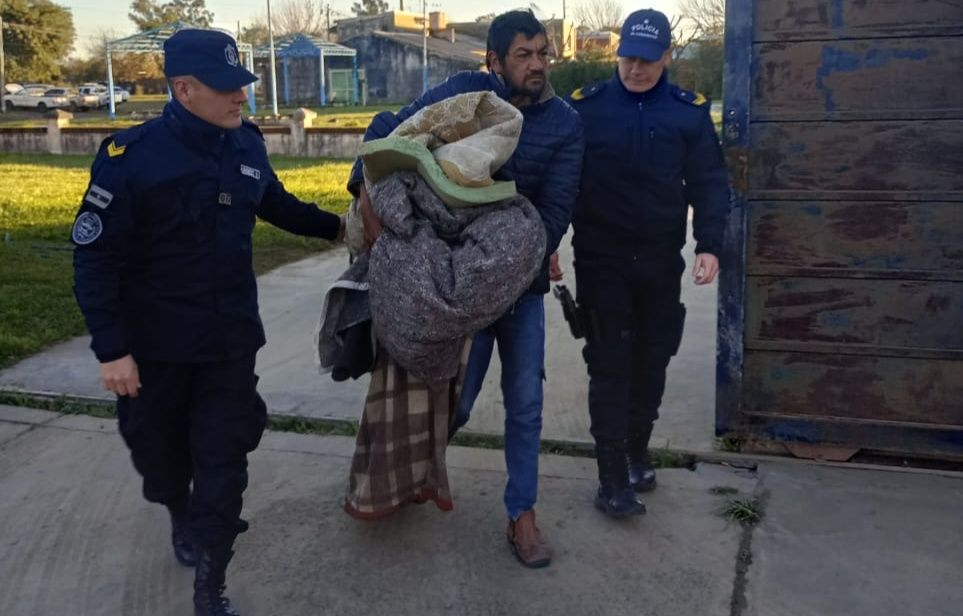 Efectivos policiales de Comisaría Segunda, a cargo del Subcomisario Rodrigo Díaz, en tareas de recorrido por la jurisdicción, lograron observar a una persona que dormía bajo temperaturas muy frías en la vía pública.