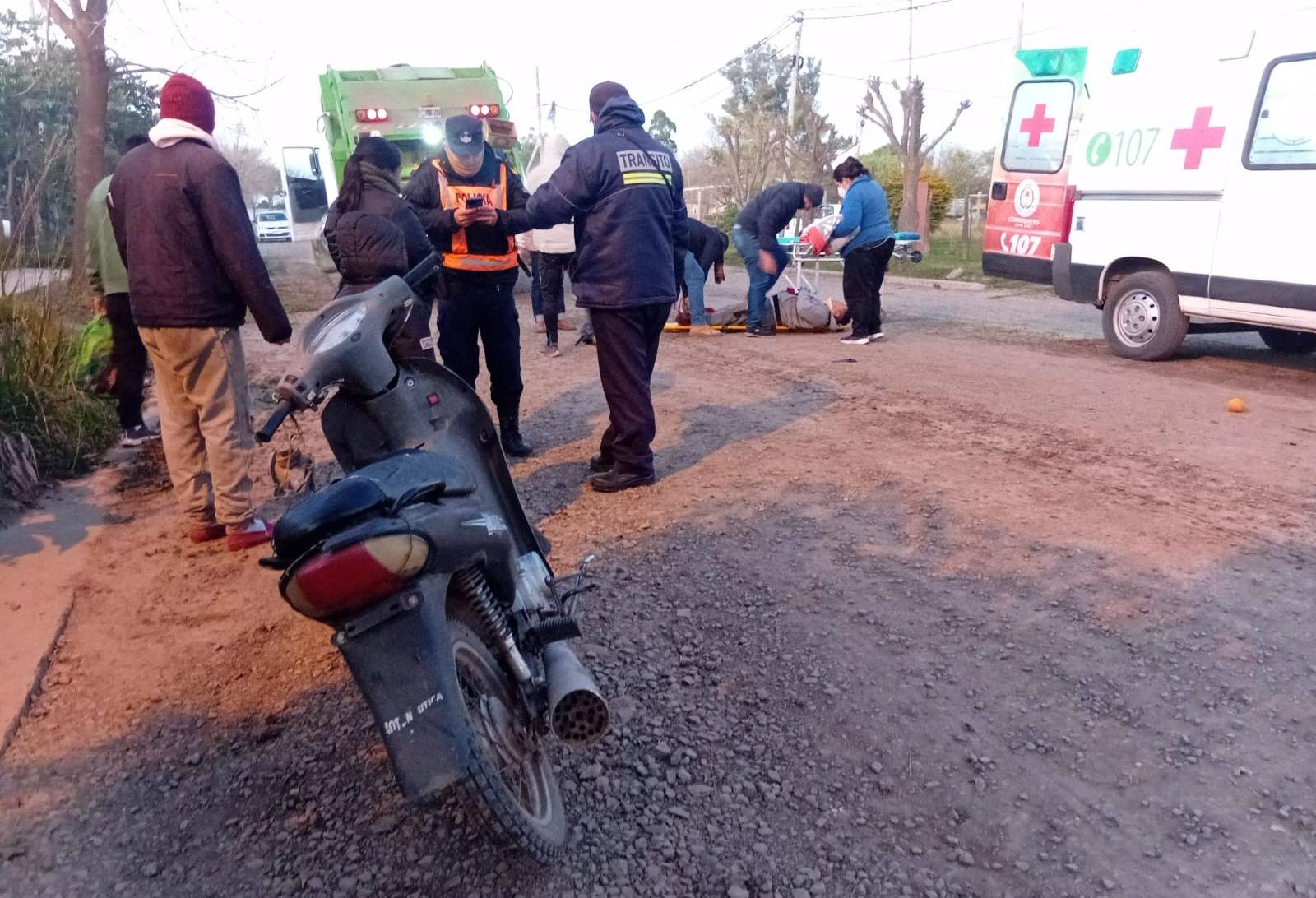 Un recolector de residuos terminó con lesiones de gravedad al ser impactado por una moto, el accidente se produjo a las 6:45 de la mañana del lunes sobre calle Martin Fierro al 800.