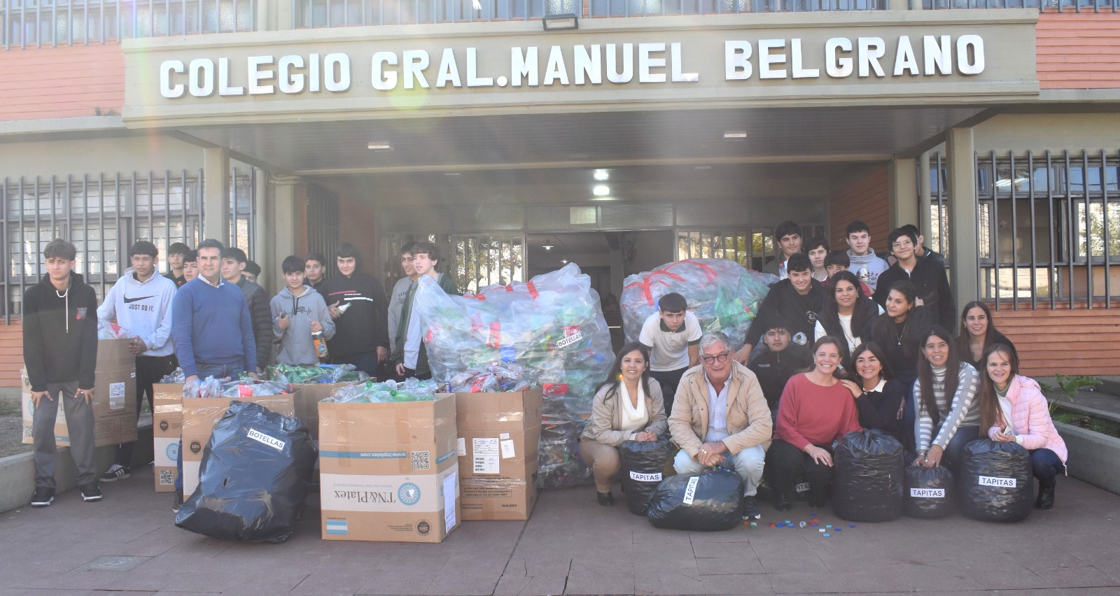 Durante dos meses, alumnos del Colegio Gral Belgrano, recolectaron, lavaron, secaron y compactaron alrededor de 150 kilos de plásticos (botellas y tapitas), además de pilas y aceite en desuso.