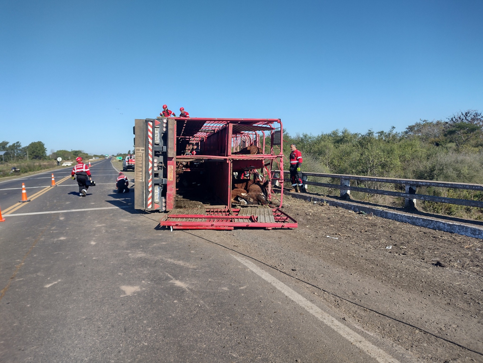 Un camión SCANIA con jaula que transportaba 87 animales vacunos volcó poco despues de las 13 del jueves sobre Ruta Nacional 119, poco después del cruce con la Ruta Provincial 126.