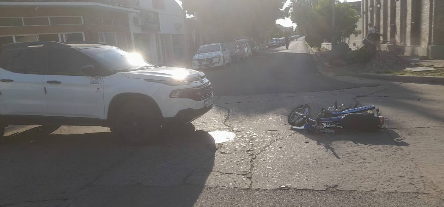 Una Fiat “Toro” y una moto Corven de 70 centímetros cúbicos protagonizaron en horas de la mañana del viernes un choque en la esquina de las calles Belgrano y Podestá de nuestra ciudad, así informaron las autoridades consultadas por Enfoque Digital.